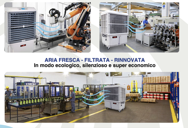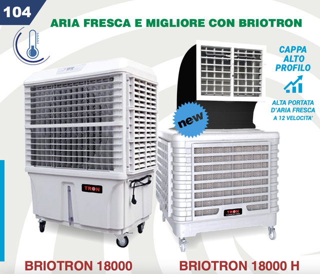 Briotron es la solución económica e inmediata para enfriar el aire de todos los ambientes internos y externos de su empresa, industria, bar, restaurante, oficina, almacén y mucho más.Reduce la temperatura del aire hasta 8°C por debajo de la del ambiente.¡Bajo consumo de electricidad!